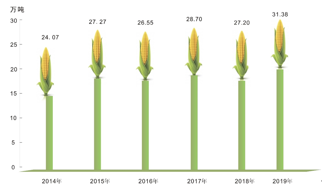 全市糧食總產量31.38萬噸,比上年增產15.5%。其中,玉米產量25萬噸,增產11.3%,單產6358.71公斤/公頃,增長8.6%;水稻產量0.51萬噸,減少2.9%,單產7122.22公斤/公頃,增長6.1%。