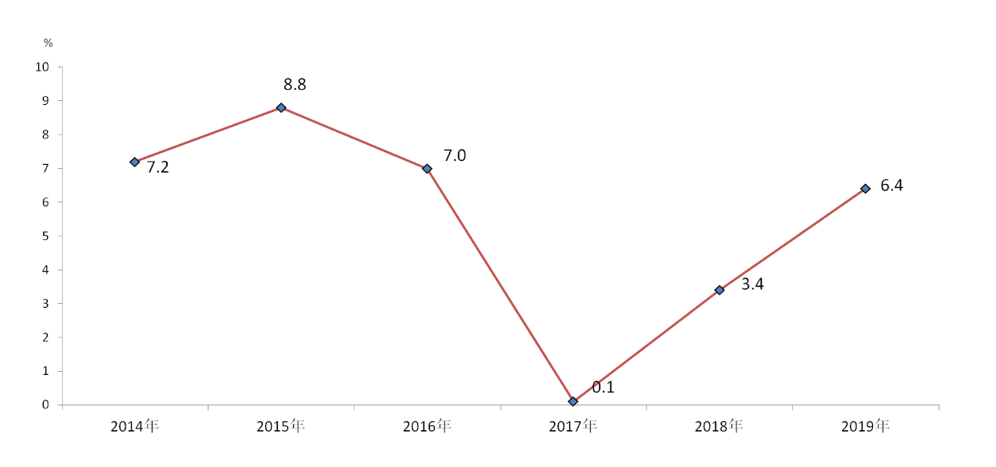 全市188戶規模以上工業企業實現增加值按可比價計算,比上年增長6.4%;主營業務收入同比下降1.5%。