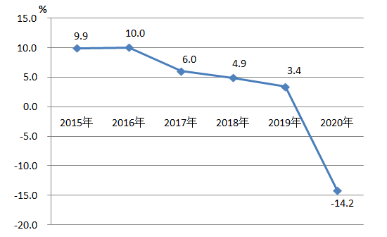 圖5 2015-2020年社會消費品零售總額增速