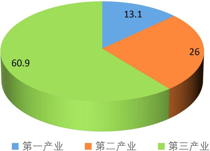 初步核算,全年實現地區生產總值[2]553.08億元,比上年增長5.3%。其中,第一產業增加值72.20億元,增長3.1%;第二產業增加值143.96億元,增長0.8%;第三產業增加值336.92億元,增長7.7%。三次產業結構比重為13.1:26.0:60.9。全年人均地區生產總值61378元,比上年增長6.8%。