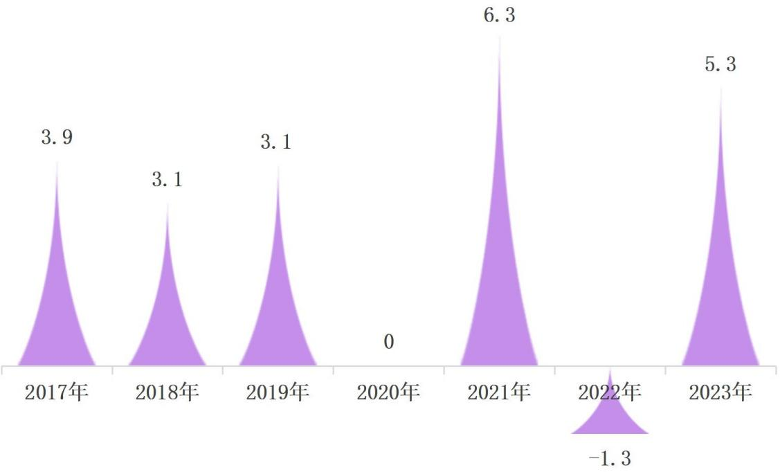 圖3 2017—2023年規模以上工業增加值增速(%)