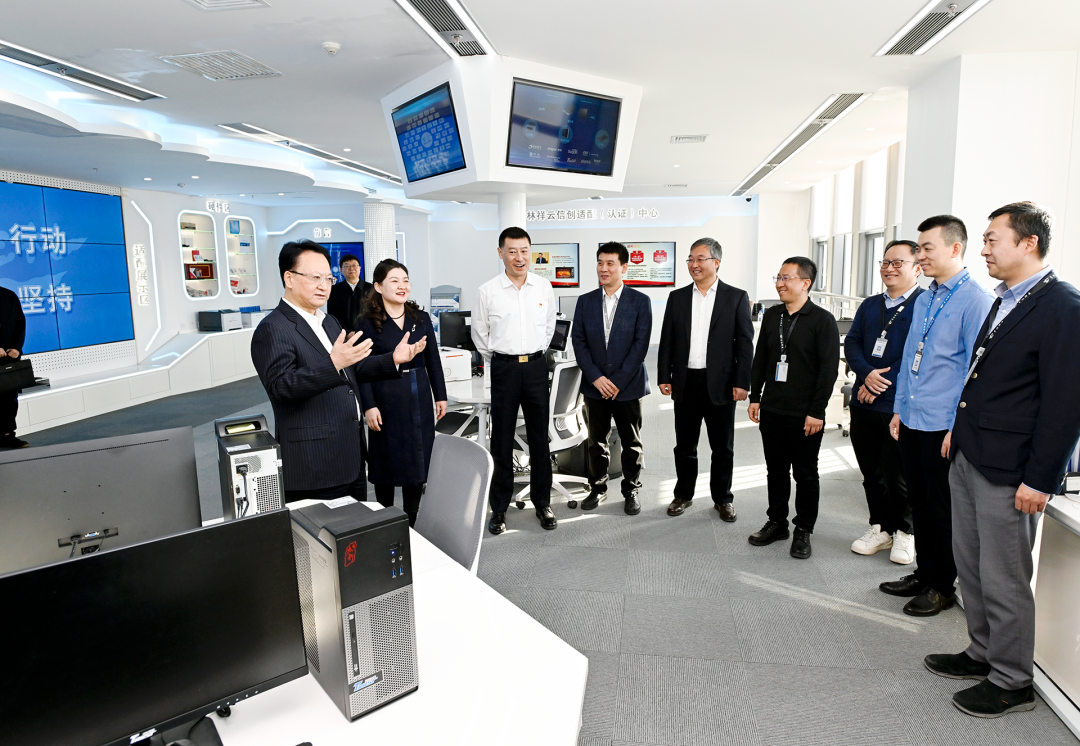 12月7日,省委書記景俊海到省政數局調研大數據產業集群建設工作,與負責大數據智能平臺運營維護的工作人員親切交流。