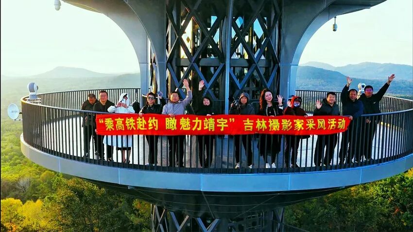 攝影家們到四海龍灣瑪珥湖開展“乘高鐵赴約·瞰魅力靖宇”攝影采風系列活動。