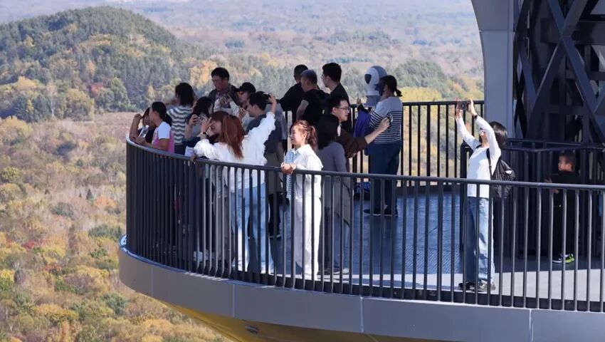 在松花江生態旅游風景區,“一江碧水、兩岸青山”的美景與雙節氛圍碰撞出獨特魅力。“天河001”號游輪憑借“水上復興號”的酷炫設計,成了游客爭相體驗的“網紅項目”,站在甲板上,江風拂面、青山入畫,不少游客舉起相機記錄這愜意時刻。10月4日,景區單日游客突破1.35萬人次,“賞江景、品江鮮”成了很多游客的選擇,來自遼寧沈陽的張先生說:“坐高鐵過來很方便,沒想到靖宇的江景這么美,剛在江邊吃了江魚,特別鮮!”清晨的瑪珥湖薄霧繚繞,宛如仙境,環湖徒步的游客沿著步道緩緩前行,呼吸著清新的森林空氣;觀景臺上,大家爭相與這一獨特地質景觀合影。10月2日,一場由游客自發組織的《歌唱祖國》愛國合唱在此上演,悠揚的歌聲回蕩在湖畔林海間,不少路人駐足加入,成為景區最動人的瞬間。整個假期,景區日均接待超700人次,10月4日至5日晴好天氣期間,兩日累計吸引游客5000余人。