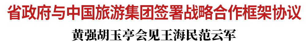 11月21日,省委書記黃強,省委副書記、省長胡玉亭在長春會見中國旅游集團有限公司黨委書記、董事長王海民和總經理范云軍一行,并共同見證省政府與中國旅游集團簽署戰略合作框架協議。
